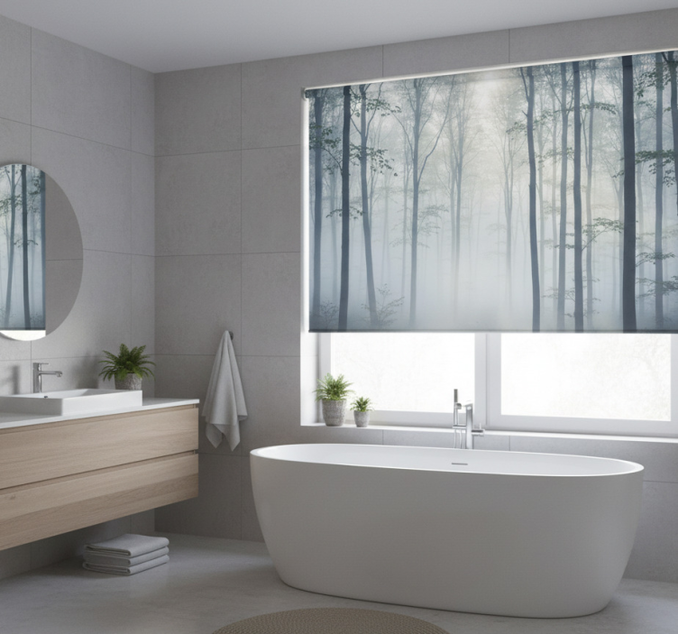 Estores de rolo de árvores mural de névoa atmosférica