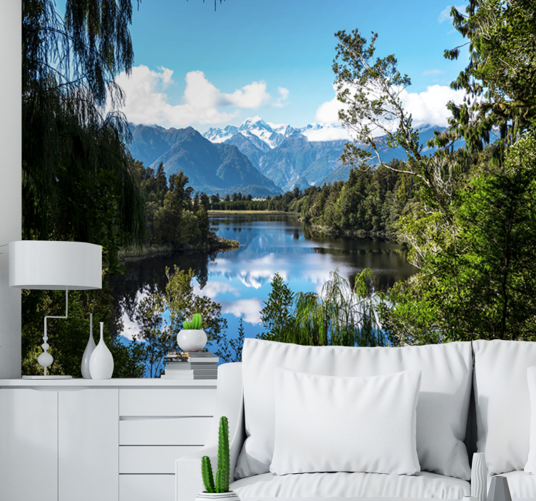 Descubra uma verdadeira obra-prima em decoração com nosso papel de parede que evoca a serenidade de um lago cercado por majestosas montanhas. A natureza se transforma em arte através de uma fotografia impressionante que captura um rio fluindo suavemente entre as florestas e um céu radiante. Cada detalhe deste design foi cuidadosamente elaborado para trazer a beleza do mundo exterior para dentro da sua casa!
