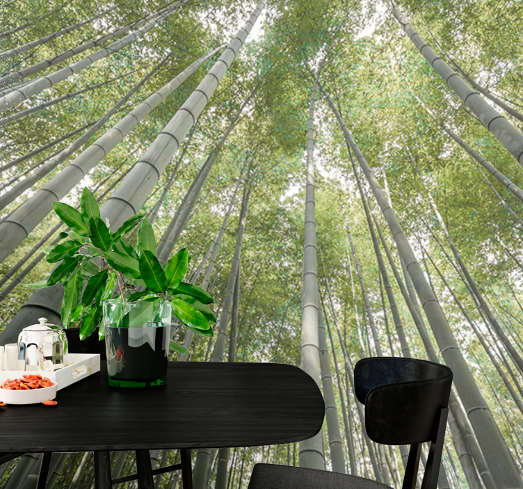 Referência: F12097O design apresenta uma imponente floresta de bambu vista de baixo, destacando caules de bambu altos e finos que se elevam. As folhas verdes exuberantes filtram a luz suavemente, criando uma atmosfera serena, perfeita para aqueles que buscam uma conexão com a natureza.