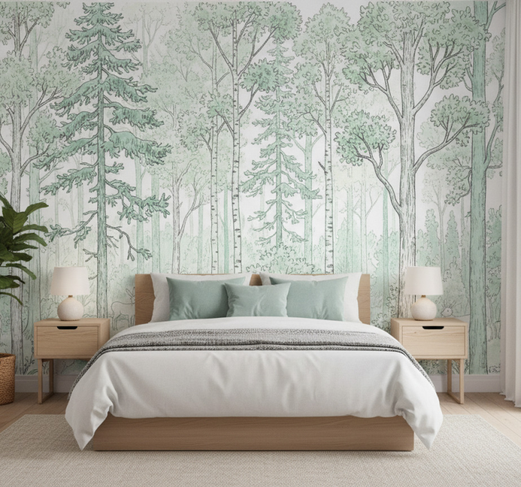 Mural de parede bosques esboço de bosque menta