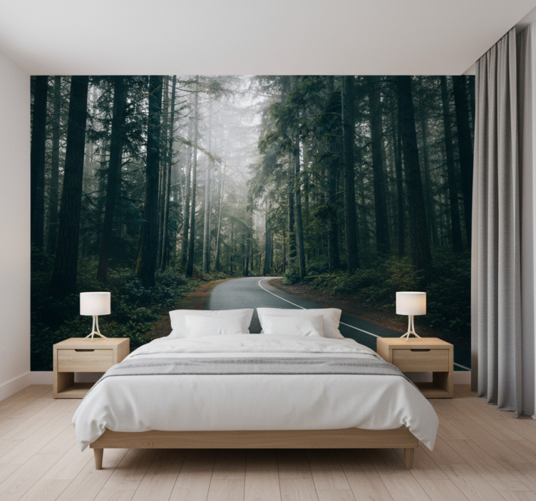 Mural de parede bosques estrada dos pinheiros nebulosa