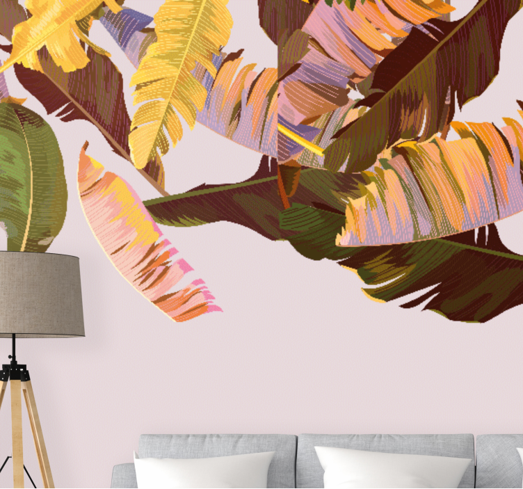 Mural de parede natureza com padrões de folhas exóticas