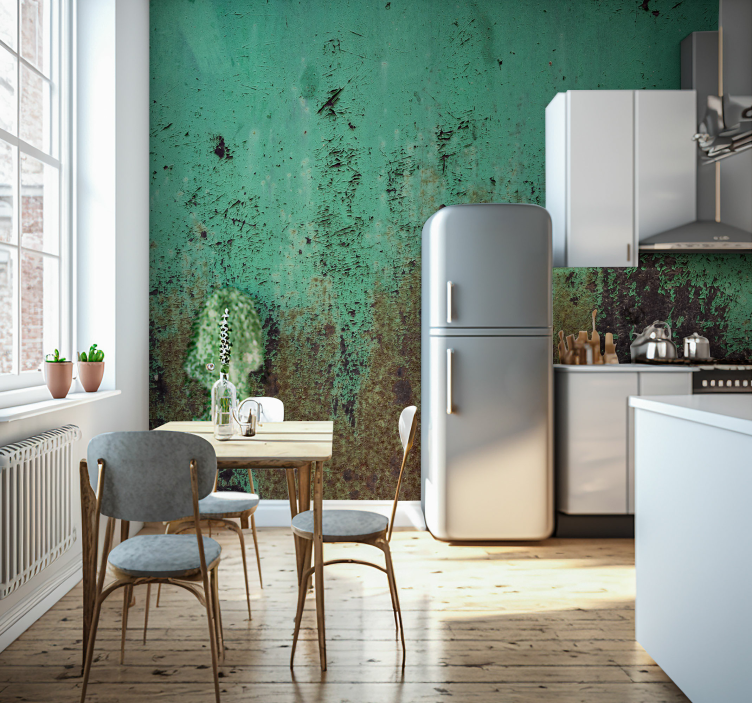 Papel de parede imitação de parede verde enferrujada