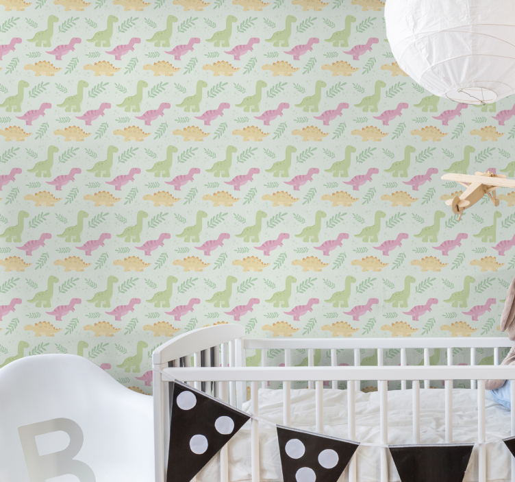 Referência: P6439Um padrão encantador com dinossauros brincalhões em tons pastel, ideal para o espaço de uma criança. Este design incorpora dinossauros fofos criando uma atmosfera suave e convidativa para o desenvolvimento de mentes imaginativas.