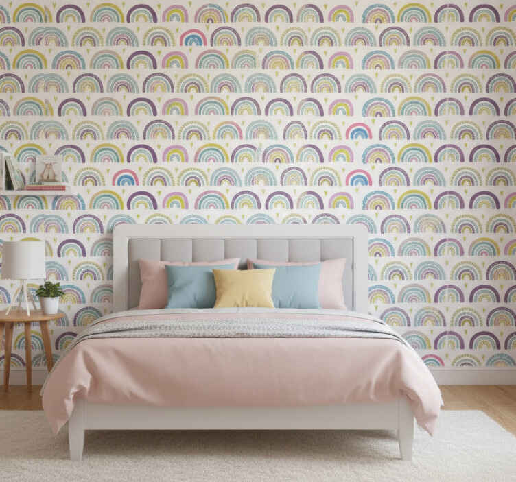 Aplicar o papel de parede para quarto com padrão colorido de arco-íris é simples e prático! Utilize cola na parede ou no próprio papel, e com o auxílio de um rolo e um pincel, você verá o seu espaço ganhar vida em poucos passos. É uma ótima maneira de renovar seu ambiente de forma rápida e eficiente!