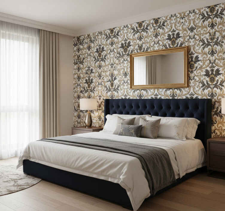 Papel de parede quarto de casal estilo barroco glamouroso
