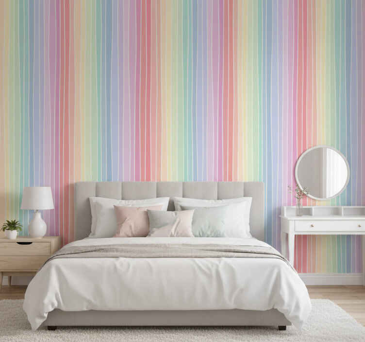 Papel de parede quarto de casal listras pastel suaves