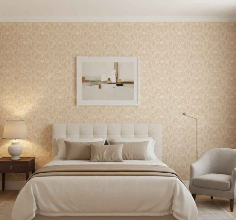 Papel de parede quarto de casal padrão damasco bege