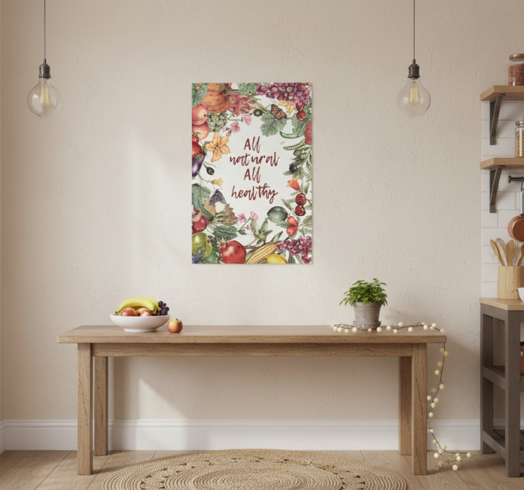 O Poster cozinha 100% natural e saudável é a escolha perfeita para quem deseja adicionar um toque de modernidade e frescor à sua decoração. Ele não só embeleza o ambiente, mas também inspira momentos de criatividade e aconchego. O design gráfico atrativo faz com que cada refeição se torne uma experiência mais especial, transformando a tua cozinha num verdadeiro espaço de convivência.