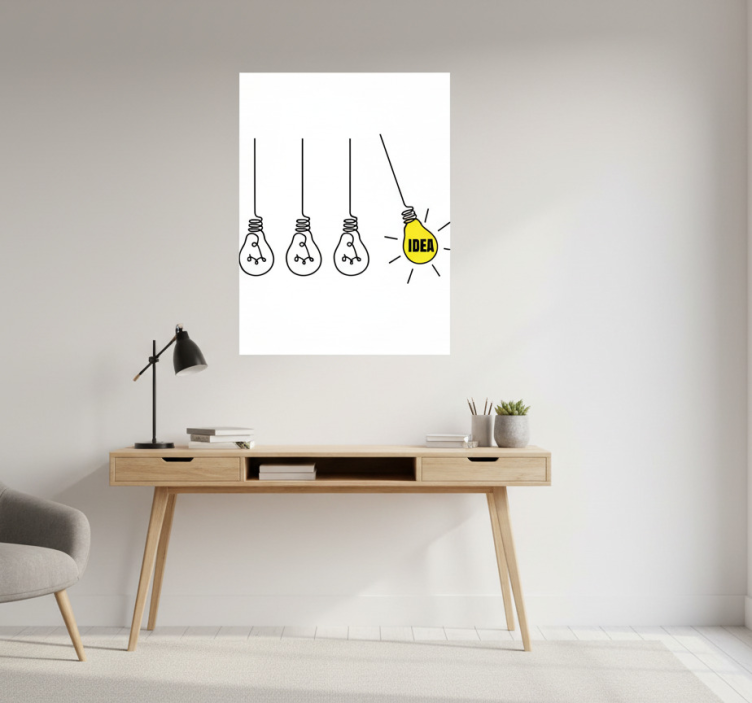 Para aplicar o Poster para escritório lâmpadas de ideia, basta escolher um local de destaque na tua parede que receba atenção. A sua fácil instalação permite que transformes o espaço rapidamente, dando-lhe um toque especial que reflete a tua personalidade e estilo. É uma forma simples e eficaz de revitalizar o teu escritório!