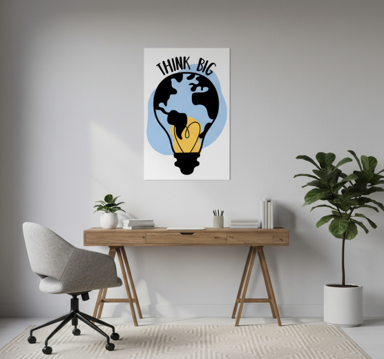 Para aplicar o Poster para escritório poster escritório mundo em forma de lâmpada, basta escolher um local de destaque na parede que possa ser facilmente apreciado. A sua montagem é simples e rápida, permitindo que transformes o teu espaço com facilidade e estilo!