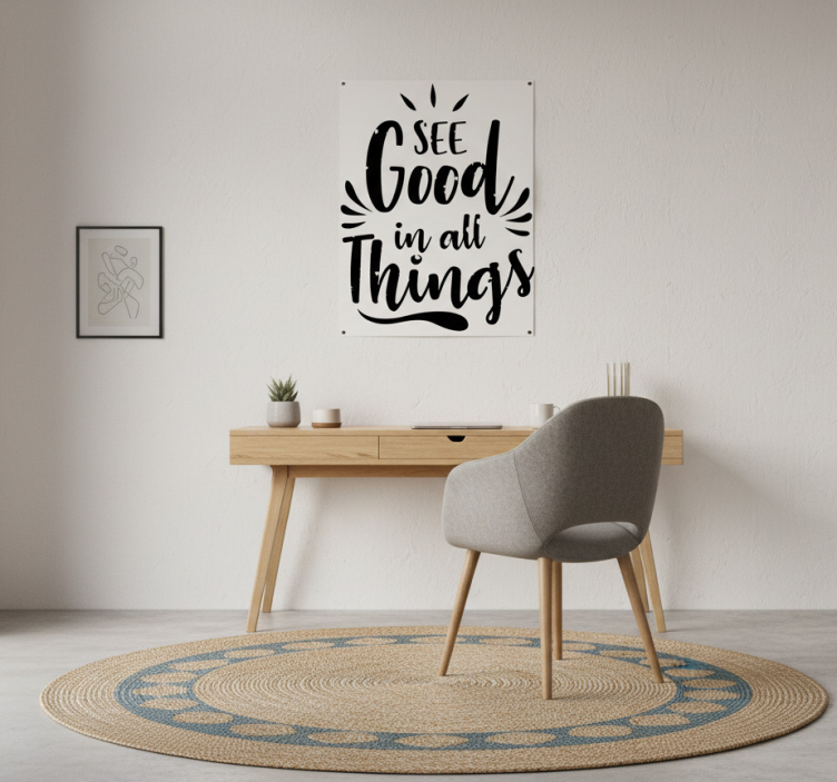 O Poster escritório veja o bem em todas as coisas não é apenas uma obra de arte, mas sim uma fonte de inspiração diária! Ao decorar o teu espaço com este poster, crias um ambiente que promove a positividade e a motivação. É uma excelente maneira de personalizar o teu escritório, tornando-o mais acolhedor e estimulante. Deixa que cada olhar para esta peça te lembre das coisas boas da vida e te encoraje a ver o bem em todas as situações!