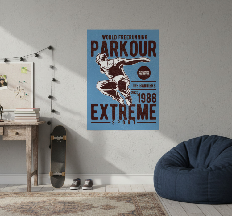 Para aplicar o Poster para jovens poster juvenil estilo parkour vintage, basta escolher um local estratégico na parede que mereça um toque especial. Com uma montagem simples e rápida, vais conseguir dar vida ao teu espaço em poucos instantes!