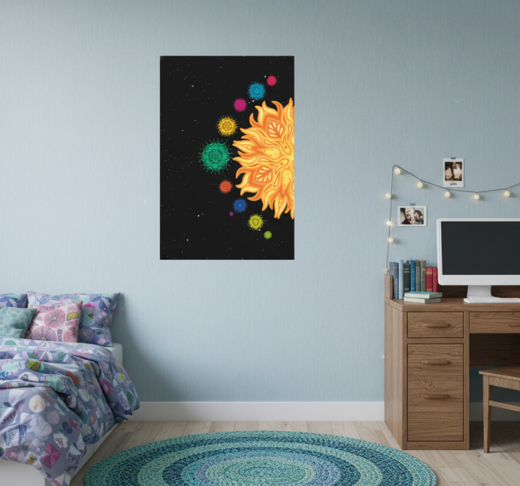 Para utilizar o Poster para jovens poster juvenil mandalas do sistema solar, basta escolher um local de destaque na parede e fixá-lo com facilidade! A sua montagem é simples e rápida, permitindo que transformes o teu espaço num instante, sem complicações.