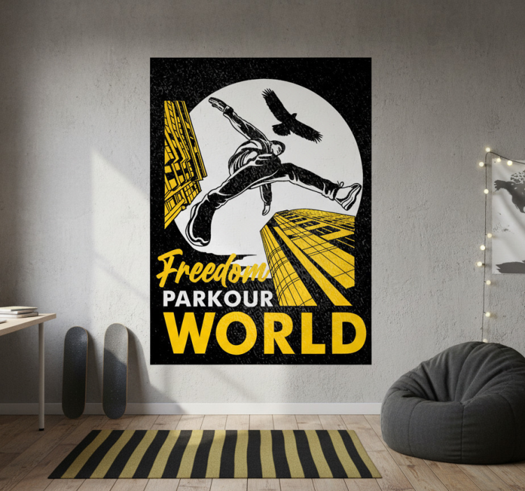A aplicação do Poster para jovens poster juvenil mundo do parkour é extremamente simples e rápida! Basta escolher o local ideal na parede e fixá-lo com fita adesiva ou moldura, e pronto! Transformar o teu espaço nunca foi tão fácil e divertido.