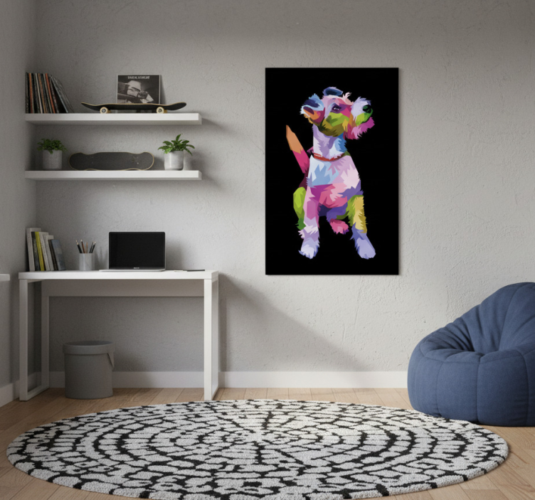 Para aplicar o Poster sala poster para sala animais geométricos fox terrier, basta escolher o local ideal na parede e usar os suportes adequados. A sua instalação é simples e rápida, permitindo que desfrutes da beleza deste artwork em minutos!