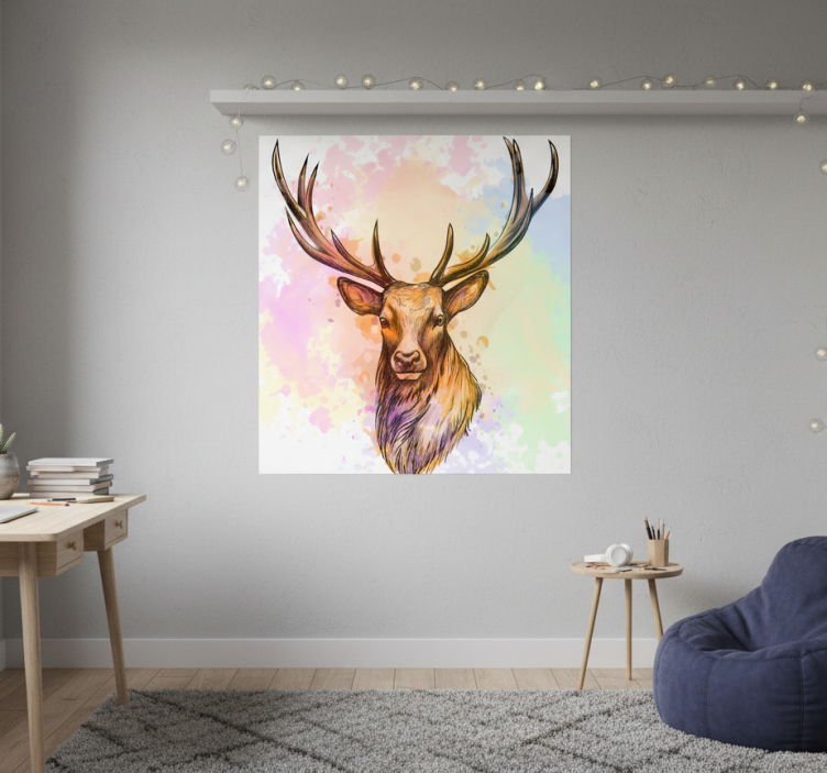 Para aplicar o Poster sala poster para sala com estampa de veado salpicado de tinta, basta escolher uma parede em destaque na tua sala. A sua instalação é simples e rápida, ideal para quem deseja uma mudança sem complicações. Uma vez colocado, ele irá certamente ser o ponto focal do ambiente!