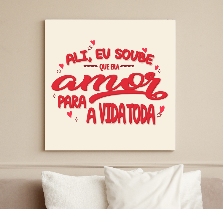 É uma letra de texto de cor vermelha que é apresentada com corações e outras ilustrações sobre fundo bege. O texto da letra musical é bem caligrafado em estilo e muito atraente. Perfeito para decorar qualquer sala ou espaço.