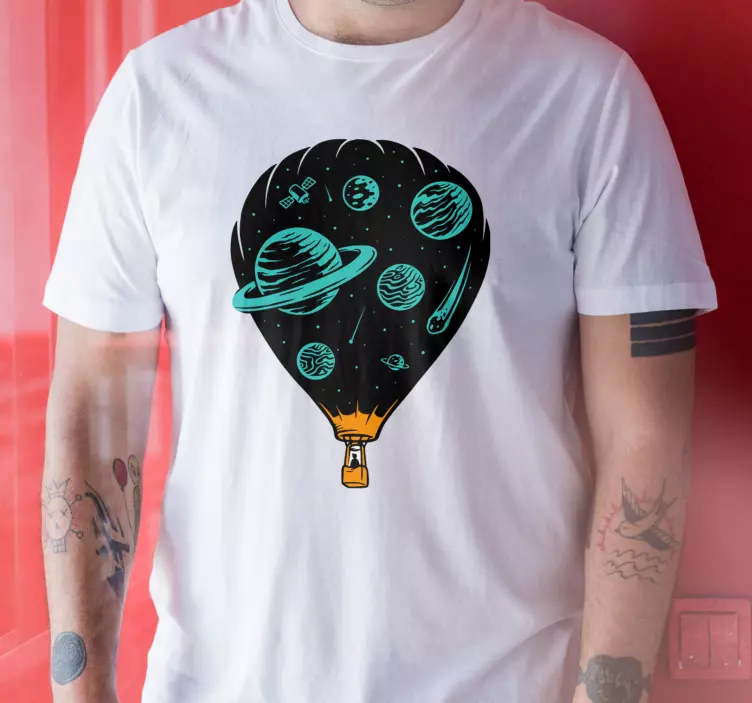 Descobre a T-shirt aventura pelo espaço, uma peça única que combina um design gráfico vibrante com elementos que evocam a magia do cosmos! Com uma ilustração caprichosa que apresenta balões de ar quente e planetas a flutuar no espaço, esta T-shirt é perfeita para aqueles que sonham em viajar por mundos distantes. O tema espacial é explorado de forma conceptual e colorida, trazendo um toque de alegria e exploração a quem a veste.