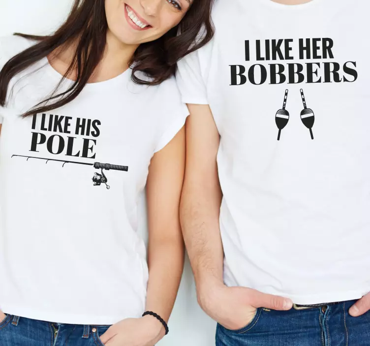 Referência: T5280Esta imagem apresenta um casal usando camisetas divertidas com citações humorísticas relacionadas à pesca. Cada camiseta destaca frases espirituosas, combinando diversão e charme, perfeitas para casais que gostam de pescar juntos. O design adota um tema leve que certamente irá divertir tanto os usuários quanto os espectadores.