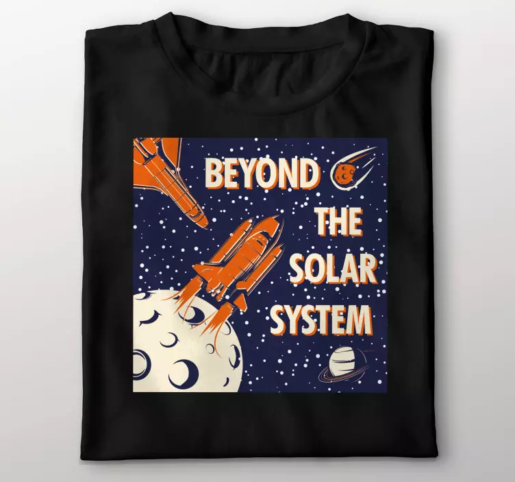 Referência: T4800Este design apresenta uma aventura cativante no espaço, mostrando um foguete passando por planetas e uma lua. As cores vibrantes e a tipografia ousada convidam à exploração e à curiosidade sobre o cosmos, tornando-o uma escolha atraente para quem é fascinado por "space travel".