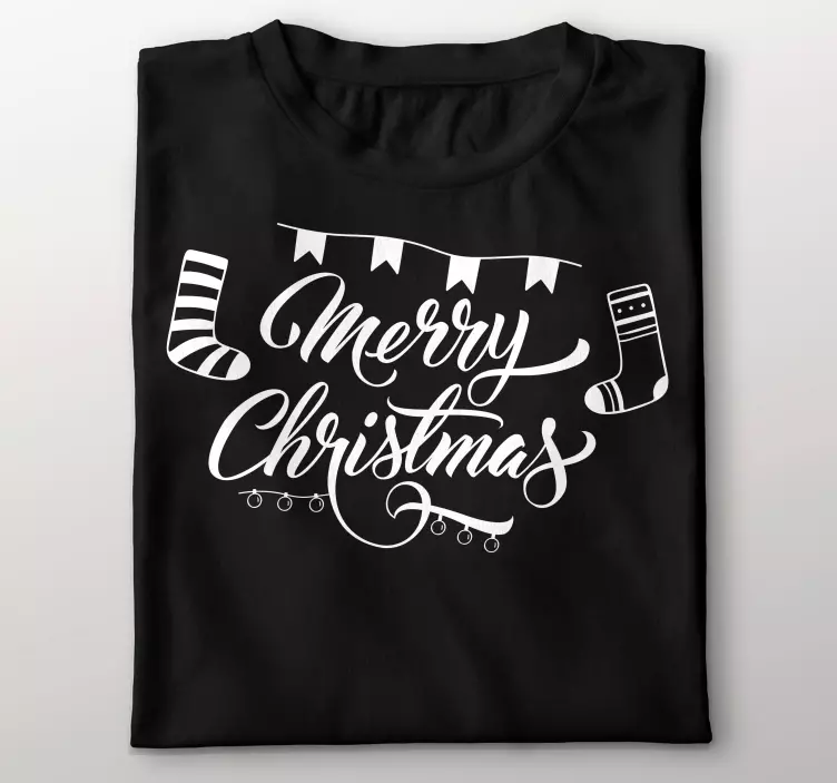 Referência: T4656Este design marcante apresenta a frase 'Merry Christmas' em uma tipografia elegante, acompanhada por padrões festivos como meias e elementos decorativos, incorporando o espírito de celebração durante a temporada de festas.