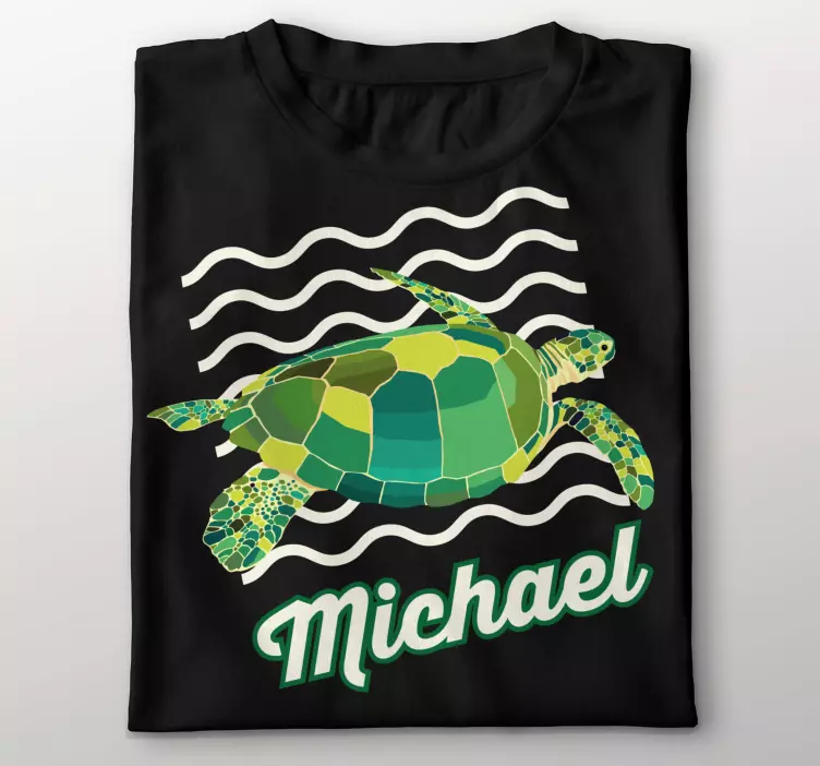 Referência: T4978Este design apresenta uma tartaruga marinha verde vibrante nadando graciosamente. Os padrões e cores intrincados evocam a beleza do oceano. As linhas fluidas no fundo adicionam movimento, enquanto o nome traz um toque pessoal, tornando-se uma peça de declaração única.