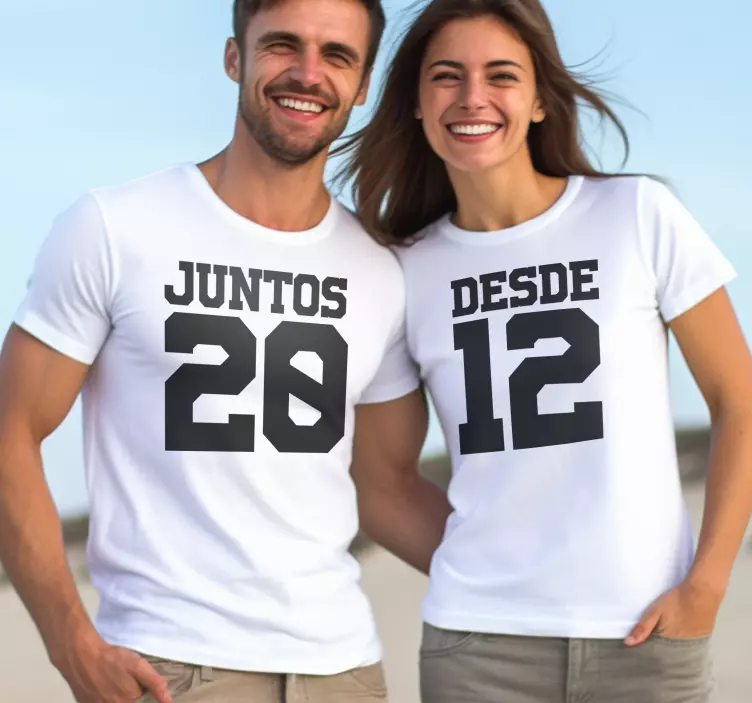 Esta T-shirt para casal juntos desde é perfeita para expressar o amor e a conexão entre os casais. Com um design gráfico exclusivo, essas camisetas combinando são personalizadas com o ano em que o casal começou a jornada juntos. A frase 'Desde a' seguida pelo número do ano cria um toque personalizado e romântico. Feitas de 85% algodão e 15% viscose, essas T-shirts de manga curta têm uma gola redonda clássica e estão disponíveis em tamanhos para adultos de S a XXL. Escolha entre as cores preto e branco e garanta que você e seu parceiro estejam sempre combinando com estilo!