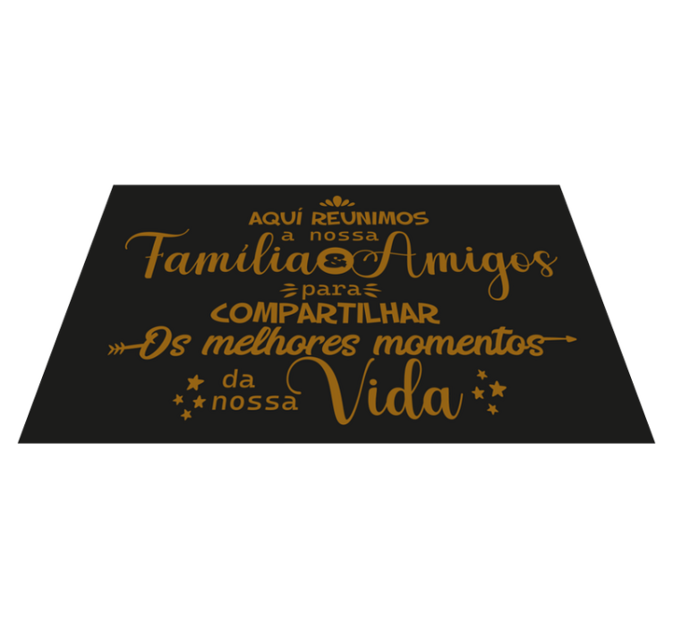Referência: R11371O tapete vinílico hall de entrada Melhores momentos é perfeito para trazer um toque gráfico ao teu espaço! Com um design que celebra a família e os amigos, esta peça apresenta uma frase inspiradora em português, ideal para ser compartilhada nos melhores momentos da vida. O capacho vinílico é uma adição acolhedora e convidativa a qualquer entrada, trazendo um toque de personalidade e calor ao teu lar!